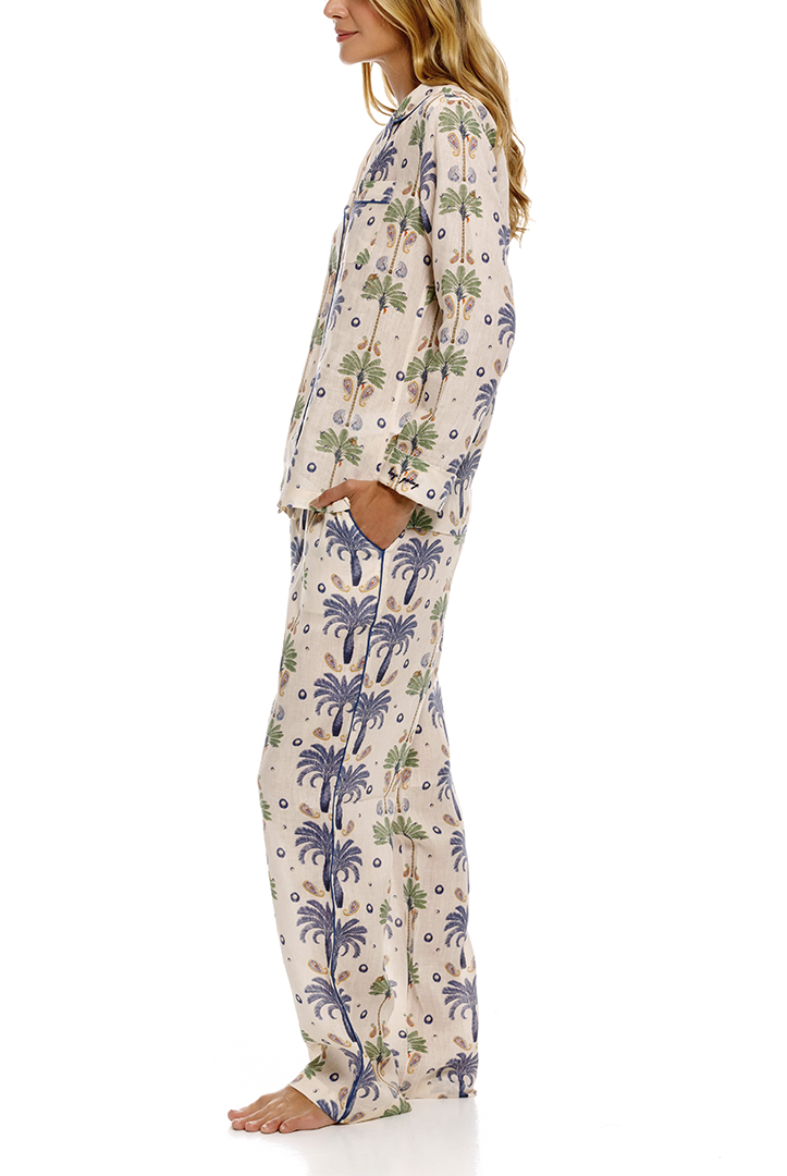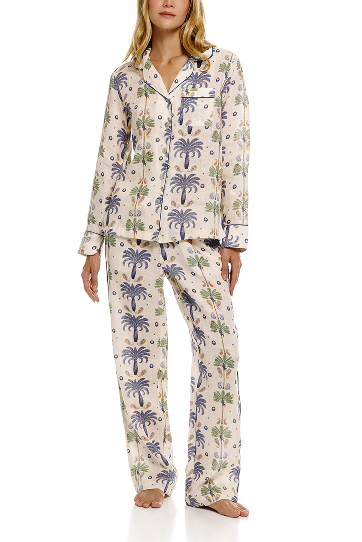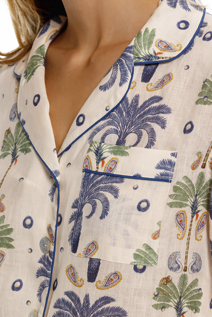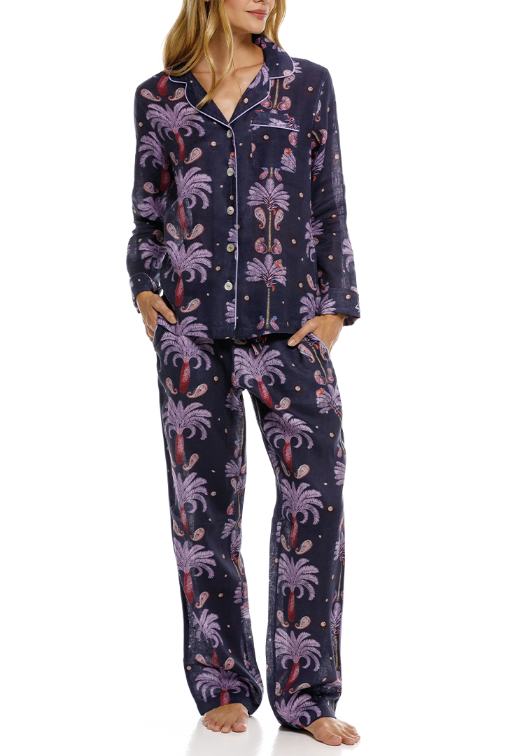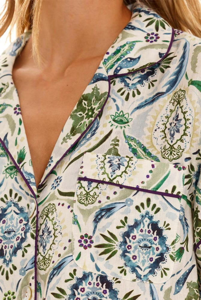 Best luxury pajamas to ensure you can relax in style “Each print tells its own story and are ideal for lounging at home or far-flung travels…Crafted from breathable linen, they're some of the best pajamas for night sweats.”