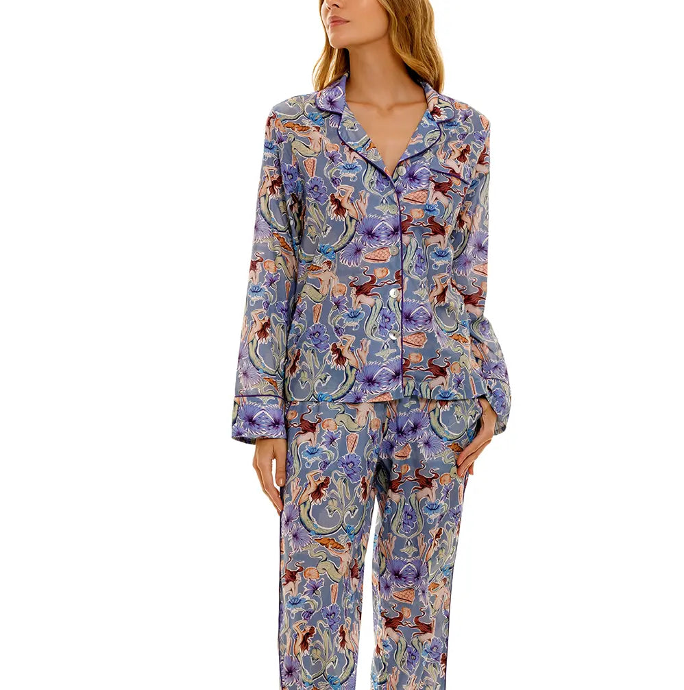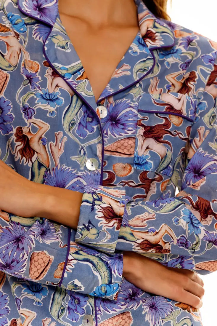 Vera Calypso Blue Longsleeve & Short Pajama Set