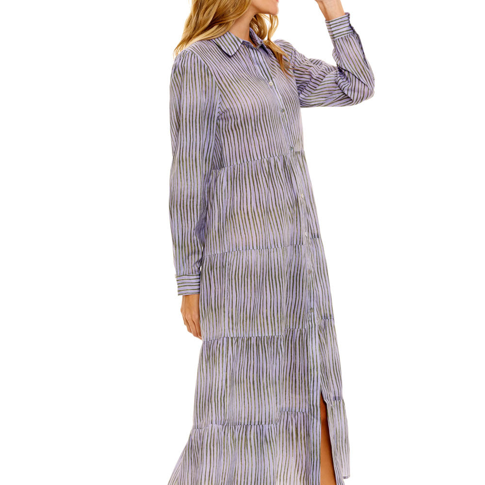A timeless staple. A flowy maxi dress with long sleeves, delicate buttons at the front, and a gently curved hem for elegant movement