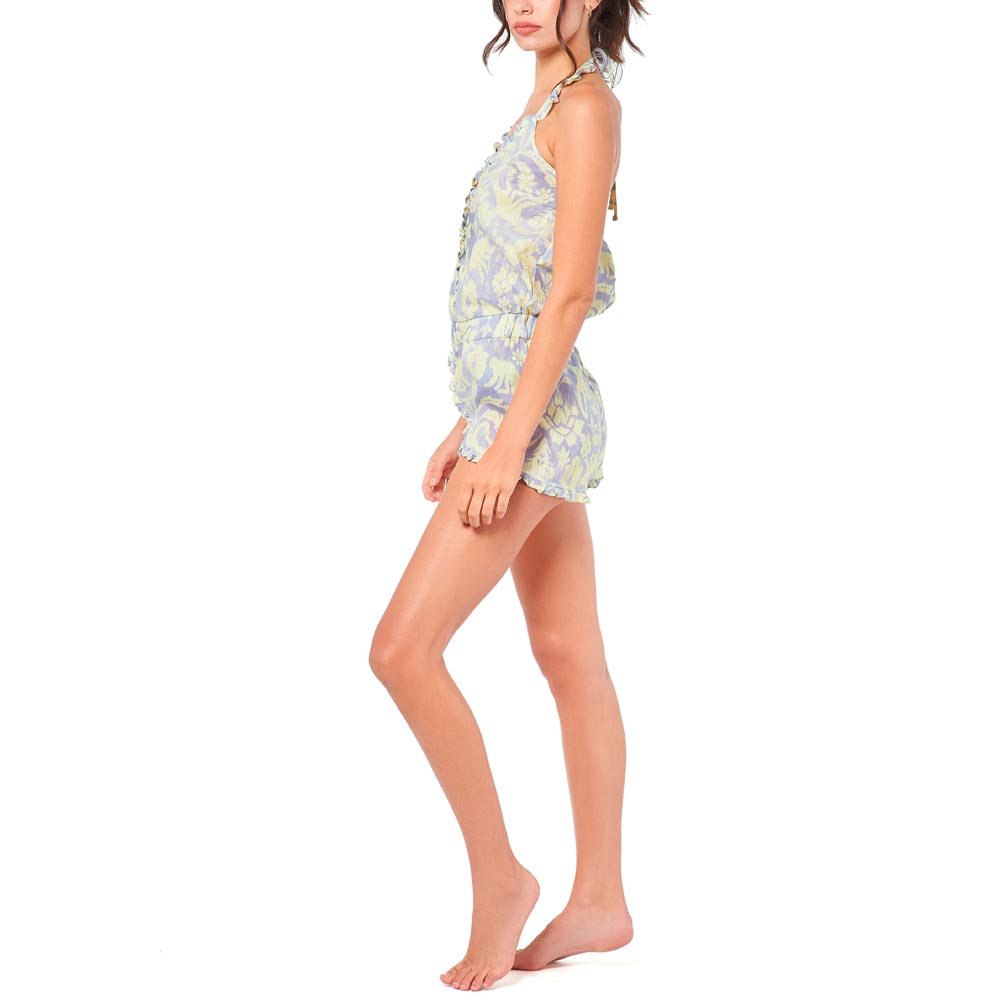 Halter Romper with a retro twist , comfy and cool, can go from the bed to the beach! Relaxed fit, lightweight, soft touch premium fabric.
