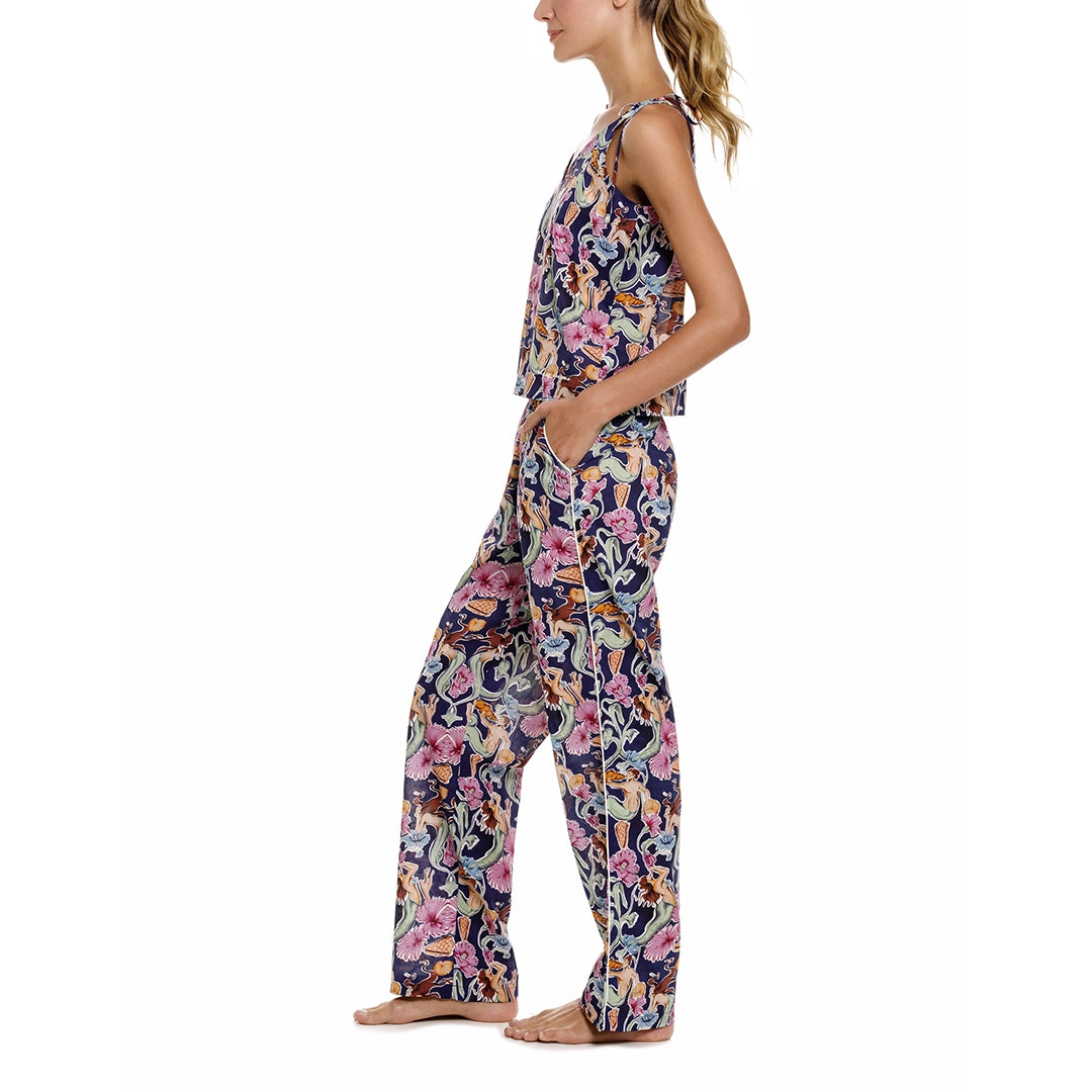 Amelie Calypso Blue Long Pants & Cami Pajama Set