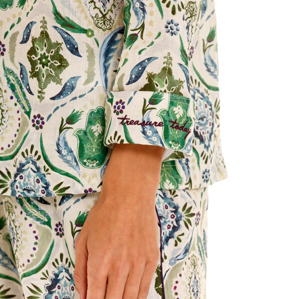 Emma Hamsa Blessing Green Long Pajama Set