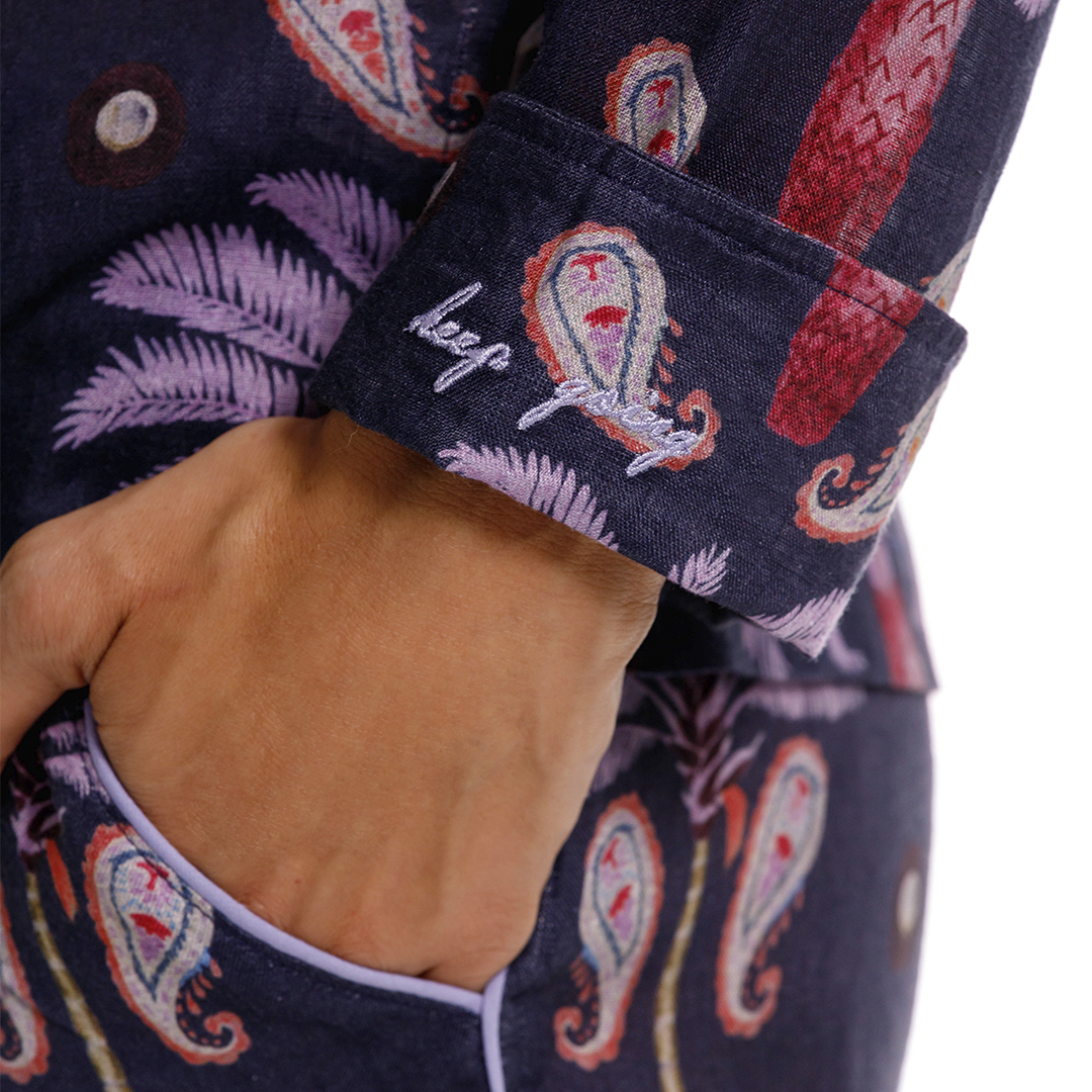 Discover the epitome of comfort and style with our breezy linen long sleeve and pant pajama set. Crafted from high-quality linen fabric, this set ensures breathability and a relaxed feel, making it perfect for all seasons.