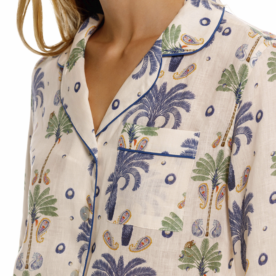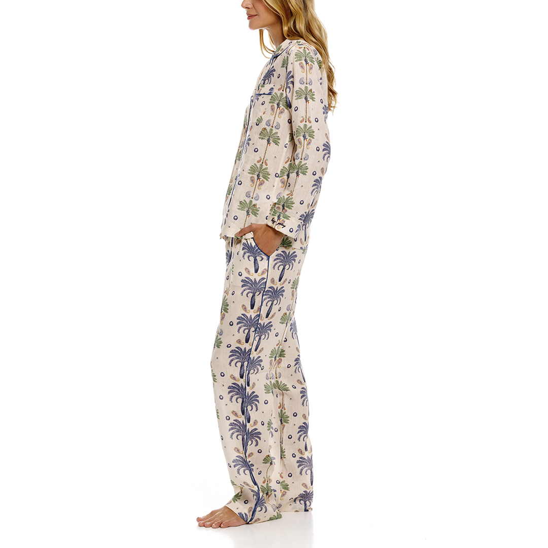 Discover the epitome of comfort and style with our breezy linen long sleeve and pant pajama set. Crafted from high-quality linen fabric, this set ensures breathability and a relaxed feel, making it perfect for all seasons.