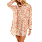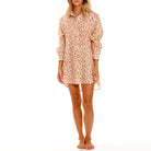 Loose high-low shirt dress with cuffed long sleeves. Buttoned halfway at the front with placket. Wear it home or to the beach. The perfect piece to throw in your suitcase for summer vacation.