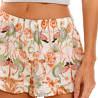 Hang around the house all day in these flirty, comfy shorts. Feminine ruffle trim and a smocked waistband with high-cut legs.