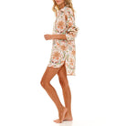 Loose high-low shirt dress with cuffed long sleeves. Buttoned halfway at the front with placket. Wear it home or to the beach. The perfect piece to throw in your suitcase for summer vacation.