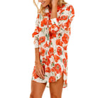 Loose high-low shirt dress with cuffed long sleeves. Buttoned halfway at the front with placket. Wear it home or to the beach. The perfect piece to throw in your suitcase for summer vacation.