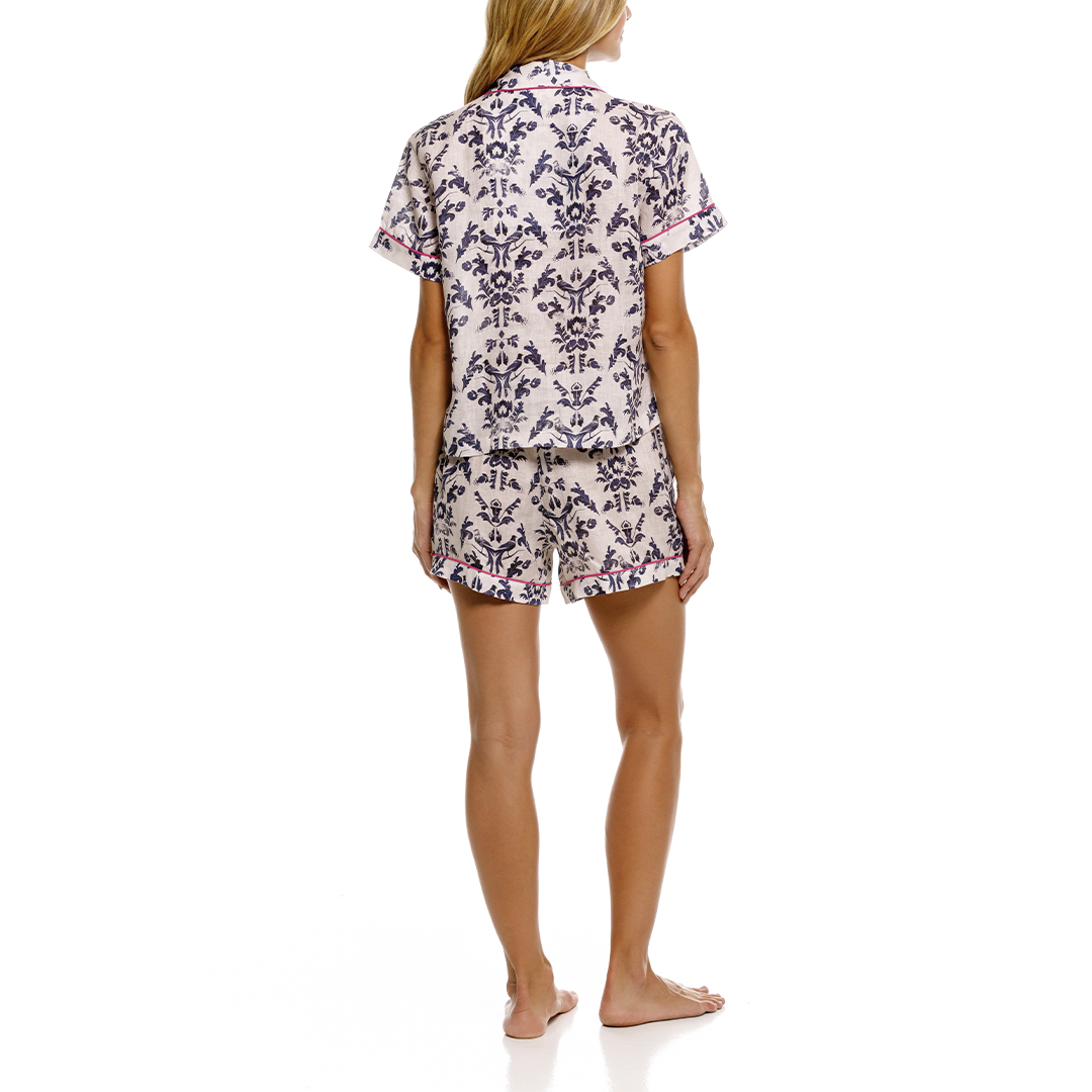 Discover the ultimate combination of comfort and style with our linen shorts and short sleeve pajama set. Crafted from high-quality linen fabric, this set ensures optimal breathability and a relaxed feel. Experience cool and cozy nights with this durable and chic pj set.